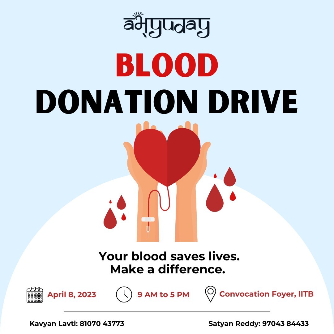 Abhyuday, IIT Bombay, in association with Sthaniya Lokadhikar Samiti, is organising a Blood Donation Drive on campus. The details are as follows: