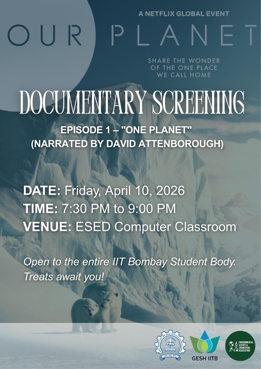 Following the 50-minute episode, we will be hosting a relaxed community discussion along with some free treats. This will be an opportunity to reflect on the film and brainstorm how we can translate climate awareness into tangible, actionable sustainability initiatives right here at IIT Bombay.