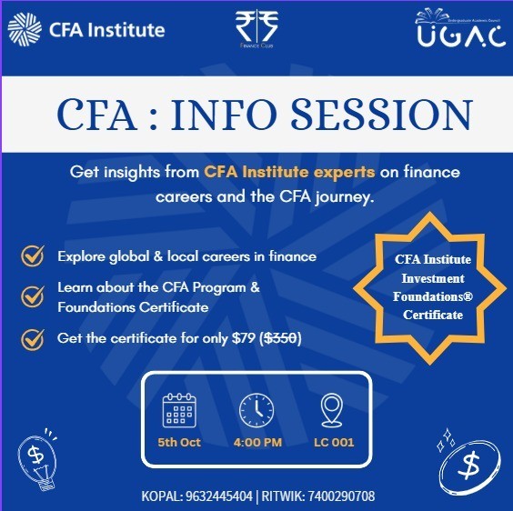 We are delighted to invite you to a CFA Info Session conducted by experts from the CFA Institute. This session is designed to provide clarity on careers in finance and the CFA journey, covering all three levels of the program.