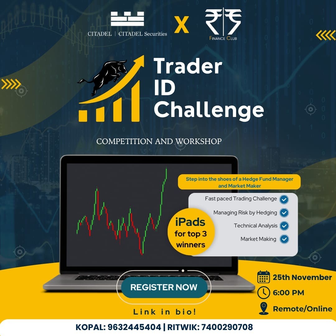 We are delighted to invite you to participate in the Citadel Securities Trader ID Challenge, an electrifying, fast-paced virtual simulation designed to test your market acumen and strategic thinking. This is an opportunity to experience trading as a hedge fund professional and market maker, allowing you to identify opportunities, manage real-time risk, and execute strategies under intense market pressure.