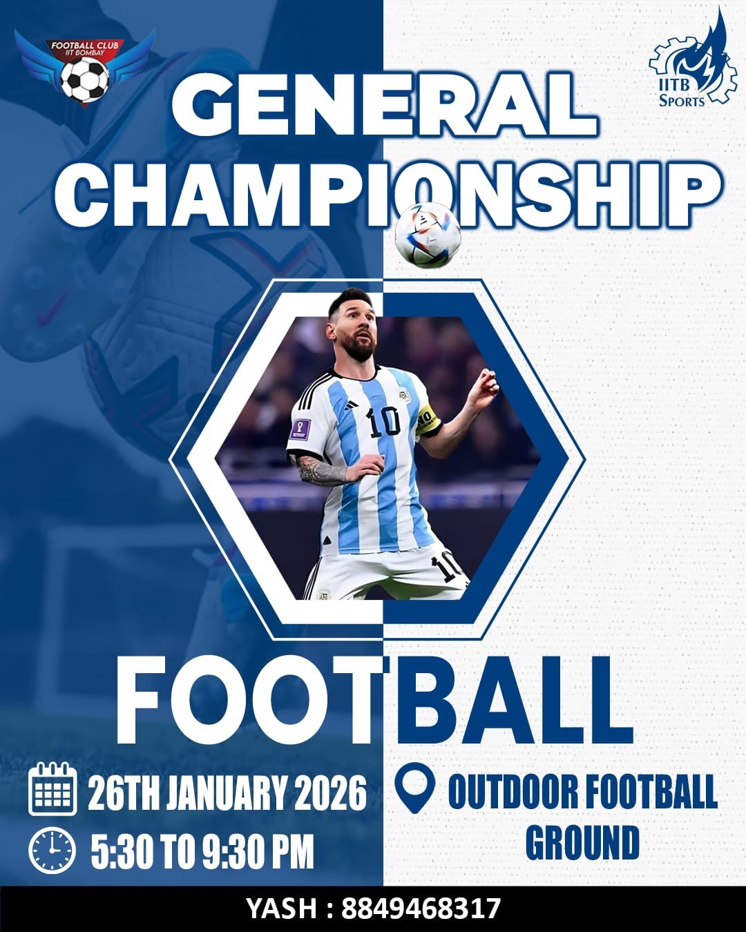 The Inter Hostel Football General Championship will be held from 26th January onwards. The ground remains booked from 6 - 9:30 PM till 4th February