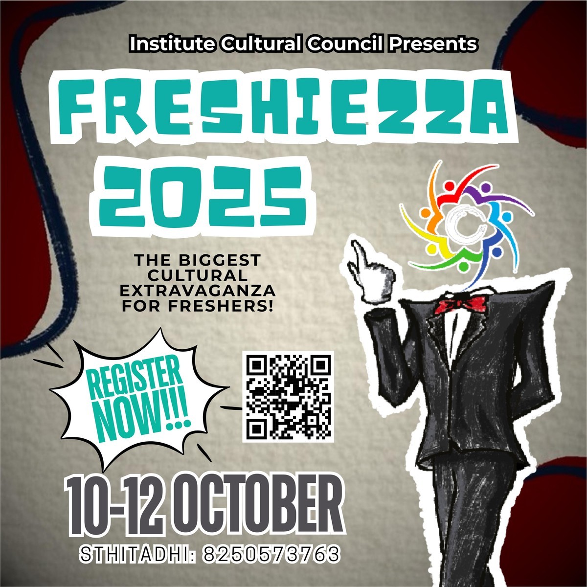 Get ready to be swept off your feet with a day filled to the brim with exciting workshops, engaging activities, and electrifying events, all meticulously curated by the Institute Cultural Council. Freshiezza is your gateway to the vibrant world of culturals, a sneak peek into the incredible experiences that await you throughout your college journey. From competitions that unleash your artistic flair to events that help you connect with fellow freshers, it's a carnival of fun, learning, and forging lifelong friendships.
