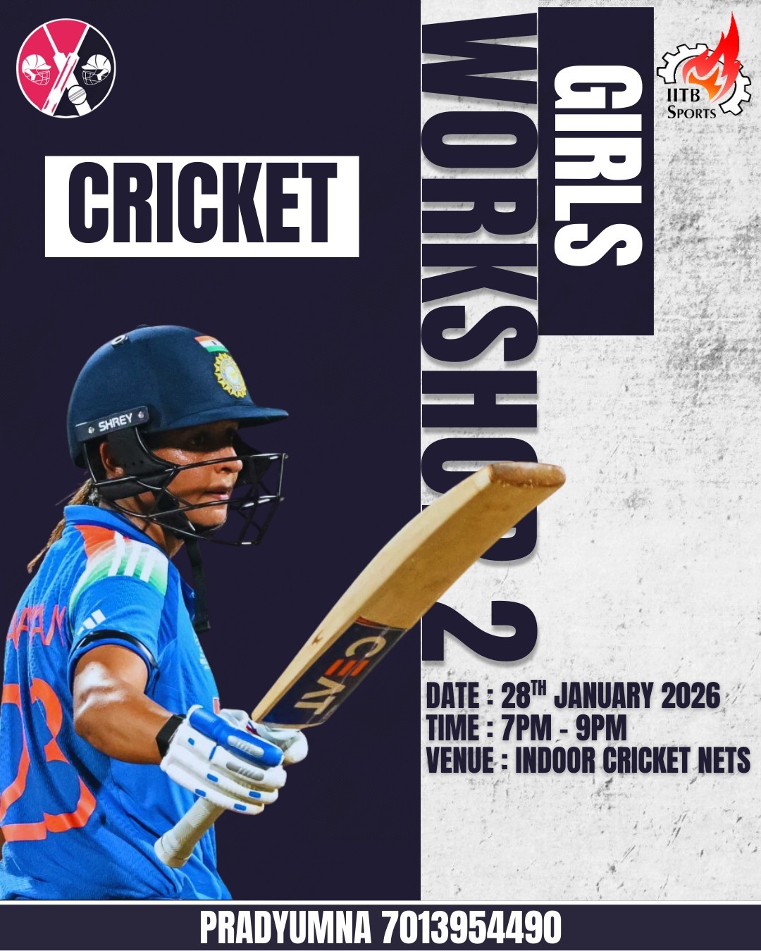 This is a great opportunity to step onto the pitch, experience the game, and become part of the growing women’s cricket community at IIT Bombay.