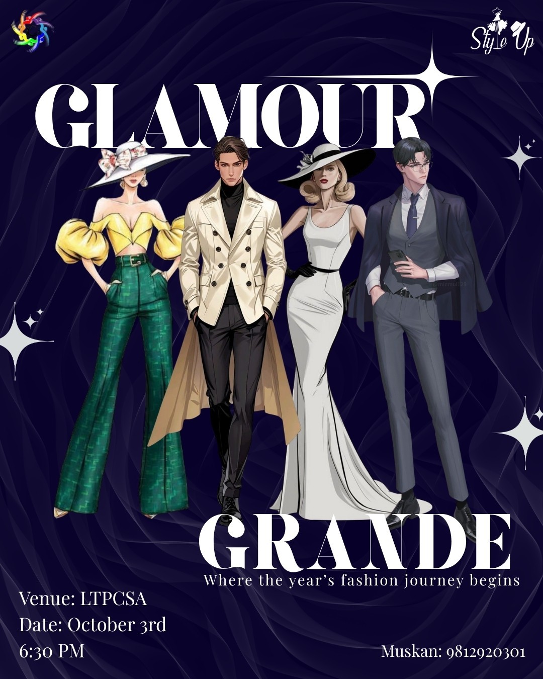 We are pleased to announce Glamour Grande, an evening that brings together fashion, creativity, and confidence on stage. The event will feature a runway filled with fresh styles, high-energy music, and an atmosphere that reflects the spirit of StyleUp.