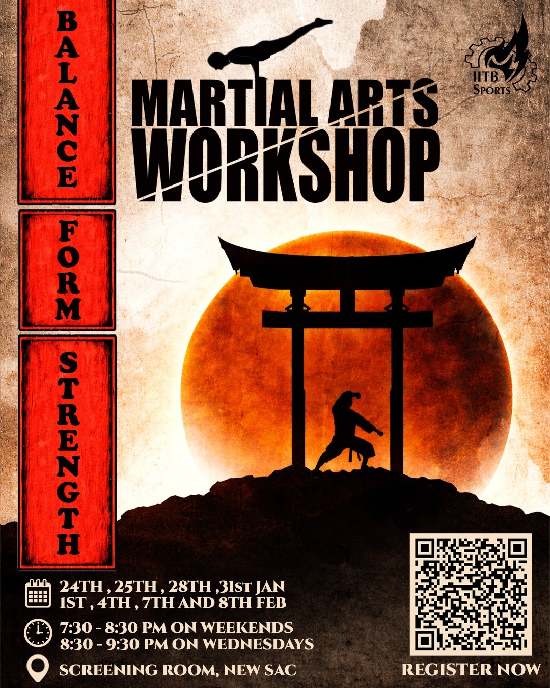 As part of Quincena, the Fitness Club, Students’ Gymkhana is excited to conduct a Girls-Only Martial Arts Workshop for interested students. This workshop aims to empower female participants through a structured blend of Taekwondo, Karate, Kickboxing, and Jiu-Jitsu, with a strong focus on physical fitness, self-defence, agility, discipline, confidence, and mental resilience.