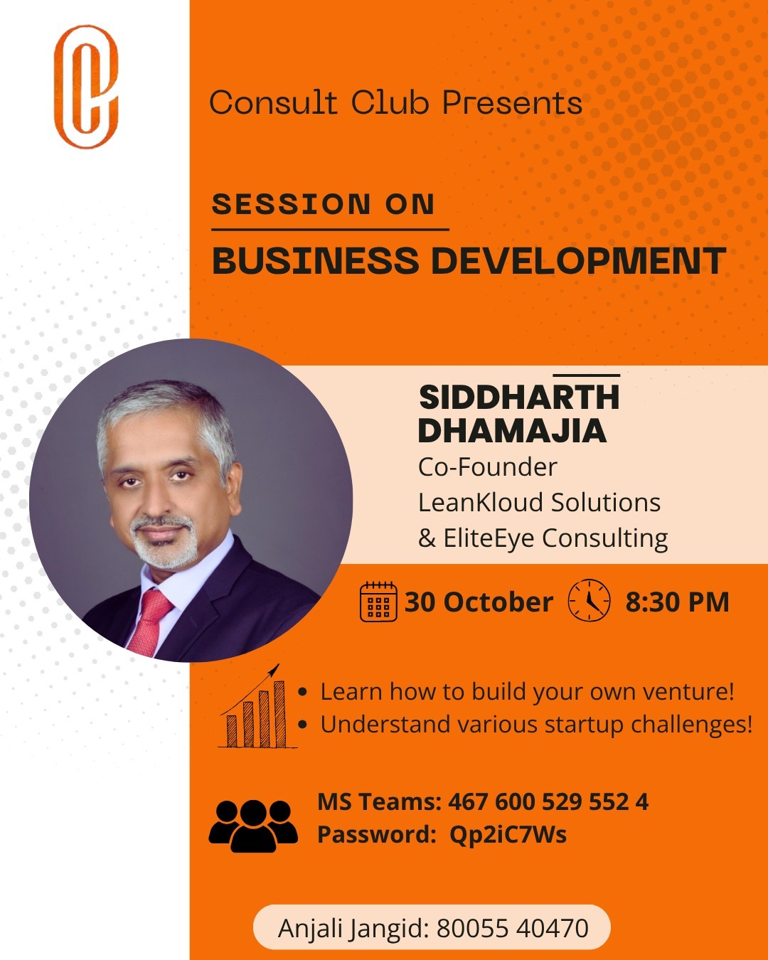 Ever wondered what it really takes to build and grow a business? We're bringing you an exclusive session on Business Development featuring Siddharth Dhamajia, Co-Founder of LeanKloud Solutions & EliteEye Consulting!