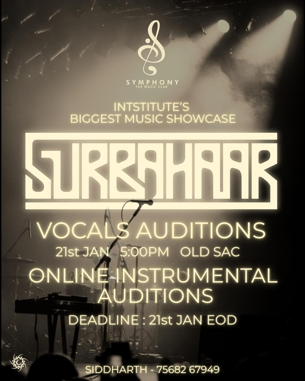 Missed surbahaar auditions? Don’t worry, we are conducting Vocal auditions again and Online submissions for the instrumentalists.