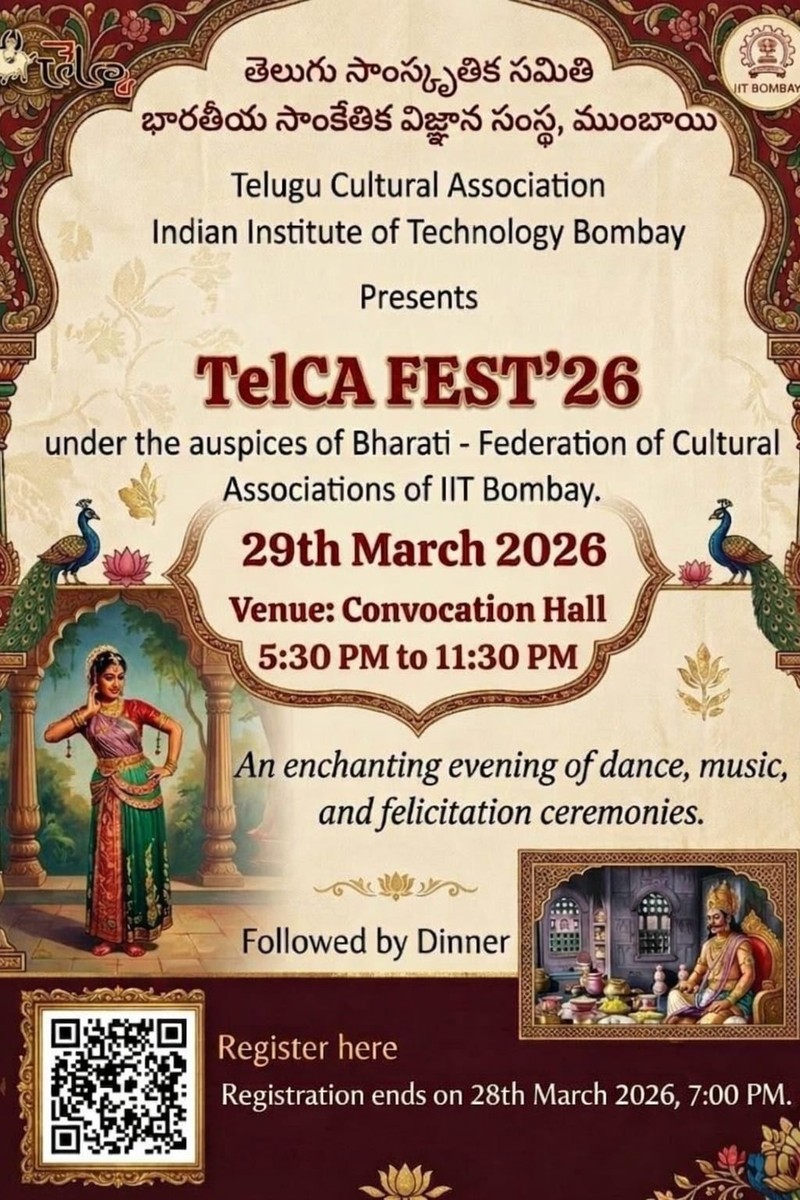 The primary objective of this fest is to bring together the Telugu-speaking student community at IIT Bombay, fostering a friendly and inclusive atmosphere. The evening will feature a variety of cultural performances, including dance and music, performed entirely by our students, alongside felicitation ceremonies.